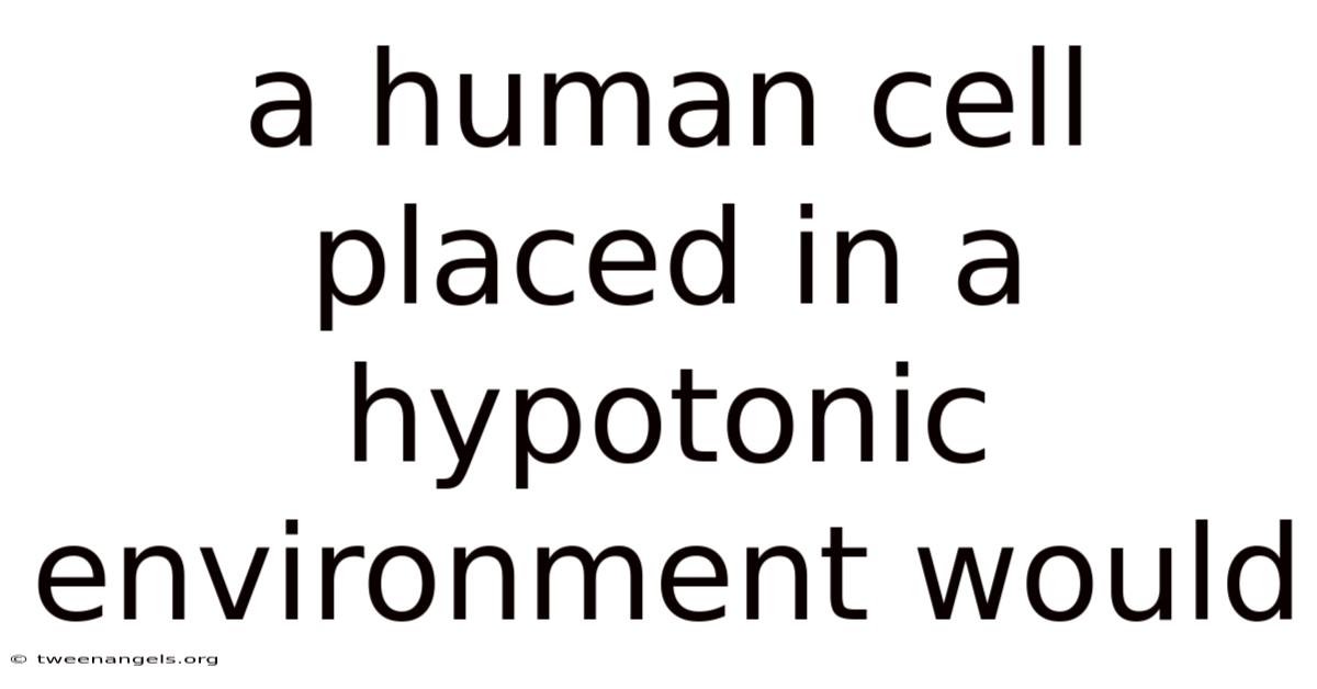 Pulling it all together, when a human cell is placed in a hypotonic environment, it experiences an influx of water due to osmosis. Still, this leads to cell swelling and increased internal pressure. Practically speaking, while cells have evolved mechanisms to deal with these changes, extreme or prolonged exposure to hypotonic conditions can lead to cell damage or death. Understanding these processes is crucial for various applications in biology, medicine, and biotechnology Which is the point..