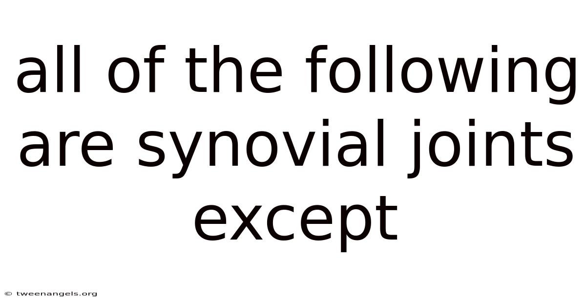 Introduction The human locomotor system relies on a variety of joint types, each engineered for specific ranges of motion and stability. Among these, synovial joints are the most abundant and versatile, enabling activities ranging from the delicate flexion of a finger to the powerful extension of the knee. When presented with a multiple‑choice question such as “all of the following are synovial joints except,” the test‑taker must recognize the subtle anatomical cues that differentiate synovial from other joint categories. This article breaks down the concept step by step, ensuring that readers can confidently identify synovial joints and spot the non‑synovial outlier.