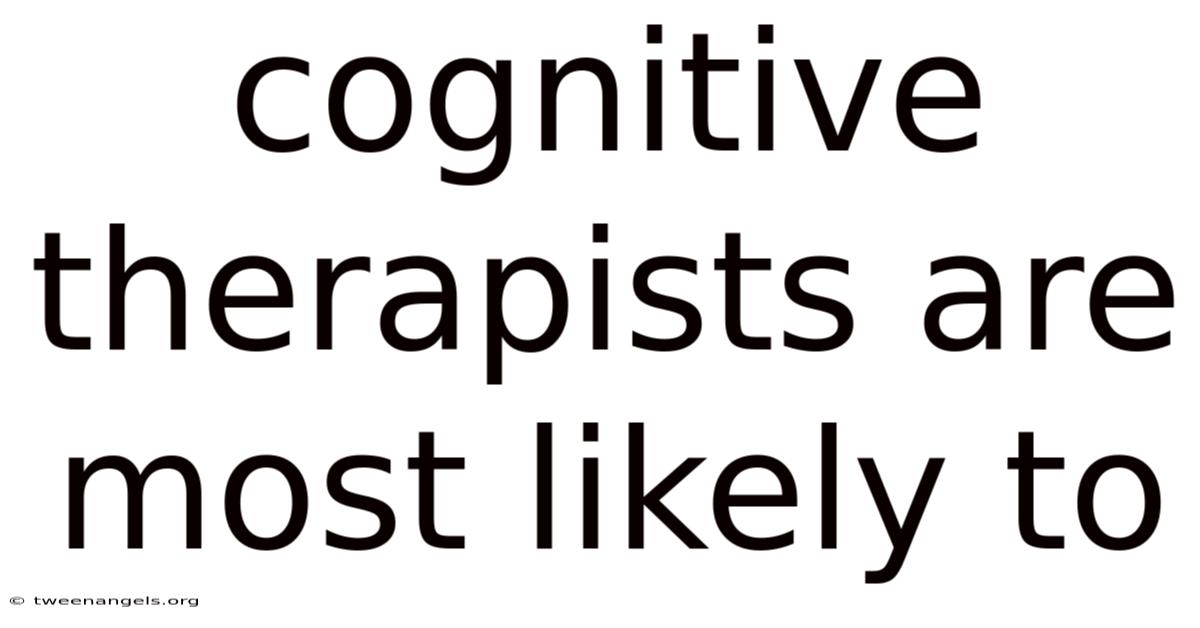 When people think of therapy, they often picture a quiet room, a supportive listener, and a gradual journey toward healing. In reality, the work of a cognitive therapist is far more dynamic and evidence‑based. Practically speaking, these professionals are most likely to focus on the cognitive processes that drive emotions and behaviors, using structured techniques to uncover and modify distorted thinking. By targeting the root of distress—thoughts—they empower clients to build resilience, improve decision‑making, and cultivate healthier habits Practical, not theoretical..