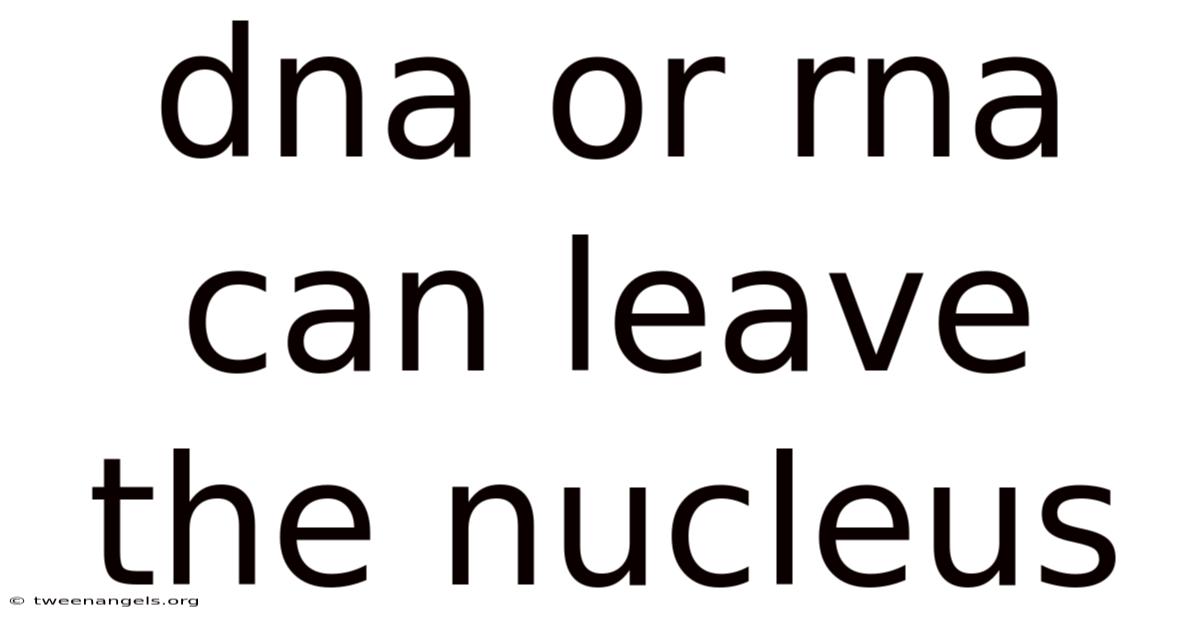 Understanding whether dna or rna can leave the nucleus is fundamental to grasping how cells function, communicate, and sustain life. In this exploration, we will uncover why DNA remains strictly protected, how RNA successfully navigates its way into the cytoplasm, and the nuanced molecular machinery that makes this selective transport possible. And while the nucleus serves as the secure vault for genetic blueprints, not all nucleic acids are confined within its walls. So this distinction shapes everything from protein synthesis to cellular adaptation, making it a cornerstone concept in biology. By the end, you will have a clear, scientifically accurate picture of nucleic acid movement and its vital role in living organisms Not complicated — just consistent..