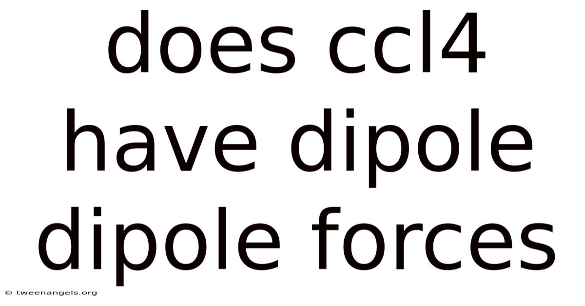 Carbon tetrachloride’s tetrahedral symmetry cancels out the individual C–Cl bond dipoles, resulting in a molecule with zero net dipole moment. The London dispersion forces, amplified by the high polarizability of the four chlorine atoms, dominate its intermolecular interactions, dictating its boiling point, density, and solubility characteristics. And understanding why CCl₄ lacks dipole‑dipole forces not only clarifies fundamental concepts of molecular polarity but also informs practical decisions in chemical synthesis, extraction, and safety management. So naturally, dipole‑dipole forces do not exist for CCl₄; the molecule is purely non‑polar. By appreciating the interplay between molecular geometry, electronegativity, and intermolecular forces, students and professionals alike can better predict the behavior of similar compounds and select appropriate solvents for their experimental needs But it adds up..