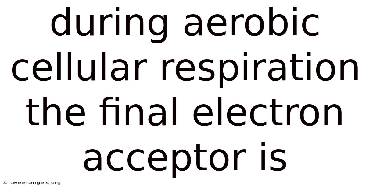 During aerobiccellular respiration the final electron acceptor is oxygen, a diatomic molecule (O₂) that enables the efficient extraction of energy from glucose. This process occurs in the mitochondria of eukaryotic cells and relies on a series of redox reactions that transfer electrons through protein complexes, ultimately using oxygen to form water. Without oxygen, the electron transport chain would stall, and the cell could only produce a fraction of the ATP that aerobic metabolism permits Not complicated — just consistent. Still holds up..