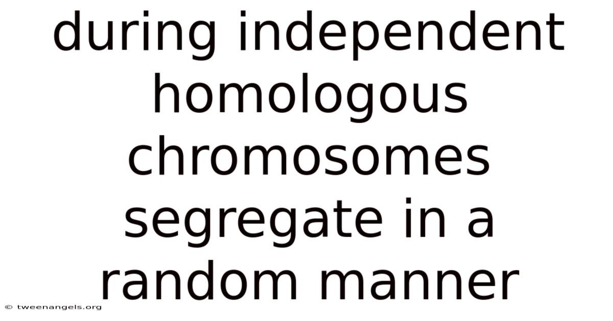 During independent homologous chromosomes segregate in a random manner, creating the remarkable genetic diversity that makes each individual unique. Practically speaking, this fundamental biological process occurs during meiosis, the specialized cell division that produces gametes for sexual reproduction. The random alignment and separation of homologous chromosome pairs during metaphase I and anaphase I of meiosis see to it that each gamete receives a unique combination of chromosomes, contributing to the vast genetic variation observed in sexually reproducing organisms That alone is useful..