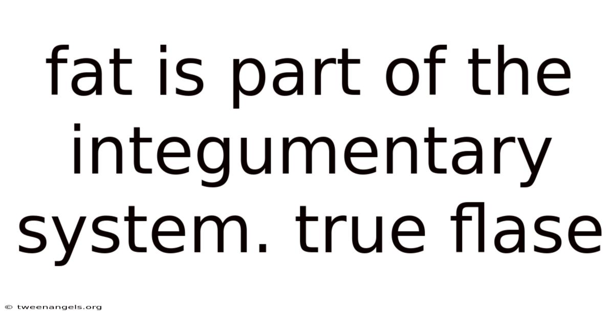 Fat, specifically adipose tissue, is not a true component of the integumentary system. In real terms, while closely associated with the skin and performing vital functions in proximity to it, adipose tissue belongs to the adipose tissue system or fat storage system, distinct from the integumentary system. The integumentary system is defined by its primary structures: the skin (epidermis, dermis, hypodermis), hair, nails, sweat glands, and sebaceous glands. These structures collectively serve critical functions including protection, temperature regulation, sensation, and waste excretion.