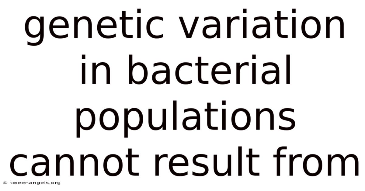 Genetic variation is a cornerstone of evolutionary biology, enabling populations to adapt to changing environments, resist antibiotics, and thrive in diverse ecological niches. Understanding what does not drive variation is equally critical for grasping the dynamics of bacterial evolution. On the flip side, not all factors or conditions contribute to genetic diversity. In bacteria, this variation typically arises from processes like mutation, horizontal gene transfer (HGT), and genetic recombination. This article explores the key factors that cannot result in genetic variation within bacterial populations, shedding light on why certain mechanisms or circumstances fail to generate diversity Worth knowing..