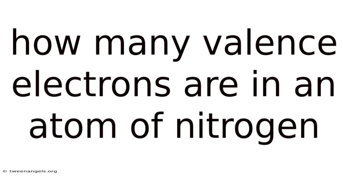 Nitrogen, a fundamental element that makes up 78% of the air we breathe and is a critical building block of life in proteins and DNA, possesses a specific number of valence electrons that dictates its unique and versatile chemical behavior. Understanding how many valence electrons an atom of nitrogen has is not merely a memorization task; it is the key to unlocking why nitrogen forms the compounds it does, from the ammonia in fertilizers to the molecules in our muscles. And the definitive answer is that a neutral nitrogen atom has five valence electrons. This count, derived from its position on the periodic table and its electron configuration, explains nitrogen's common oxidation states of -3, +3, and +5, and its tendency to form three covalent bonds to achieve a stable electron arrangement The details matter here. Practical, not theoretical..