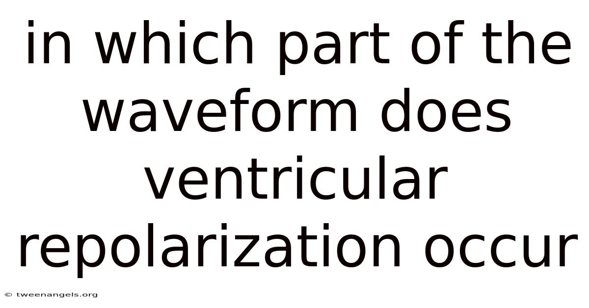 The T wave on an electrocardiogram (ECG) represents the critical phase of ventricular repolarization, marking the heart's recovery after contraction. In real terms, this specific segment of the cardiac cycle is fundamental to understanding the electrical activity of the heart's main pumping chambers, the ventricles. Let's explore where exactly ventricular repolarization occurs within the waveform and its physiological significance.