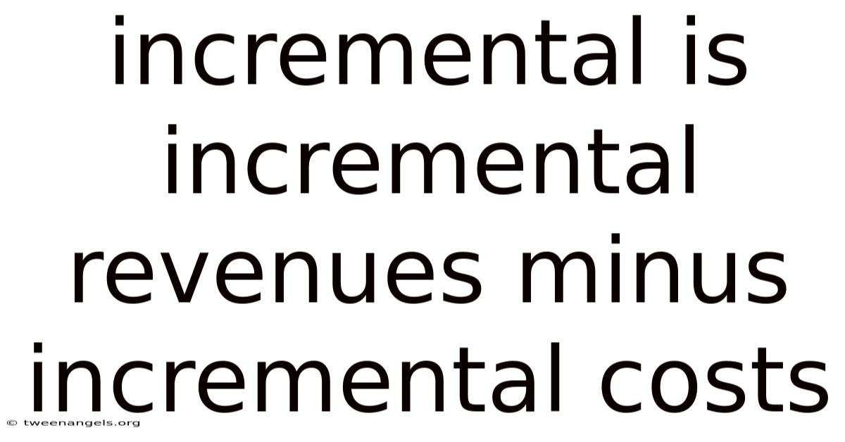 Understanding that incremental equals incremental revenues minus incremental costs equips managers with a powerful analytical lens. By isolating only the extra cash flows tied to a specific decision, businesses can avoid the misleading influence of sunk costs, focus on marginal profitability, and allocate resources more efficiently. Consider this: this disciplined approach not only sharpens financial acumen but also aligns strategic choices with the underlying economic principle of maximizing marginal benefit over marginal cost. Whether you are pricing a new product, expanding capacity, or evaluating a cost‑reduction plan, the incremental framework provides a clear, quantifiable pathway to smarter, more profitable decisions Less friction, more output..
