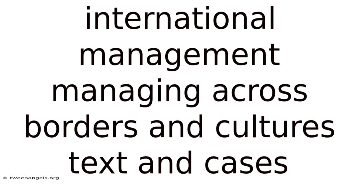 International Management Managing Across Borders And Cultures Text And Cases