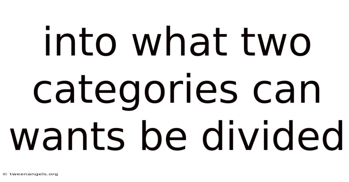 Understanding the two main categories that can divide our wants is essential for navigating daily life with clarity and purpose. This article explores the nuanced distinctions between these two categories, helping you recognize patterns in your thoughts and make more intentional choices. In real terms, when we take the time to reflect on what we truly desire, we access a deeper sense of direction and fulfillment. By breaking down these concepts, we aim to empower you to align your actions with your values, ultimately enhancing your overall well-being That's the whole idea..