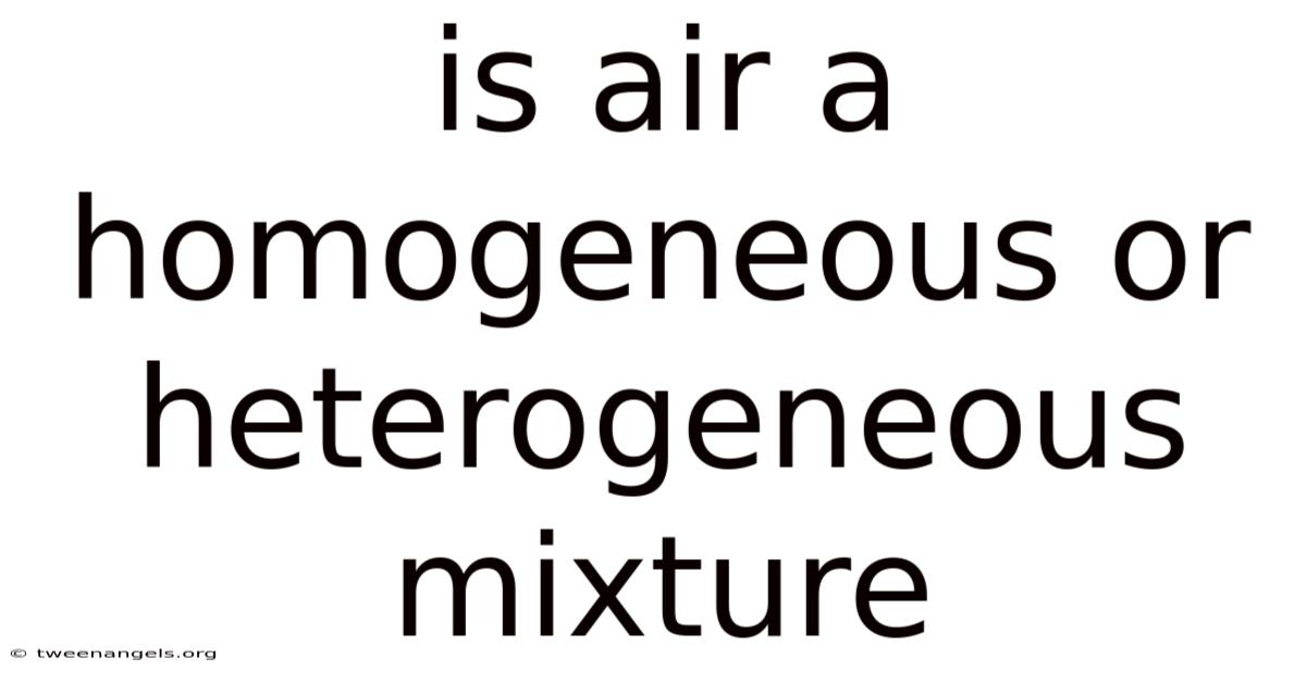 When we talk about is air a homogeneous or heterogeneous mixture, we are essentially asking whether the gaseous envelope surrounding Earth has a uniform composition throughout or if it contains distinct phases or components that vary from place to place. On the flip side, the answer is not merely academic; it influences how we model weather patterns, design industrial processes, and interpret environmental data. Throughout this piece, key terms such as homogeneous mixture, heterogeneous mixture, phase, and composition will be highlighted to reinforce learning and improve search relevance for readers seeking precise scientific explanations Simple, but easy to overlook..
