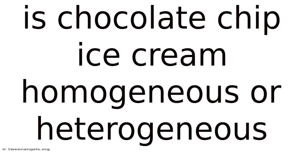 Is chocolate chip ice cream homogeneous or heterogeneous? The evidence points to a heterogeneous mixture. While the base ice cream itself is an emulsion that approaches uniformity, the addition of distinct chocolate chips introduces separate solid phases that