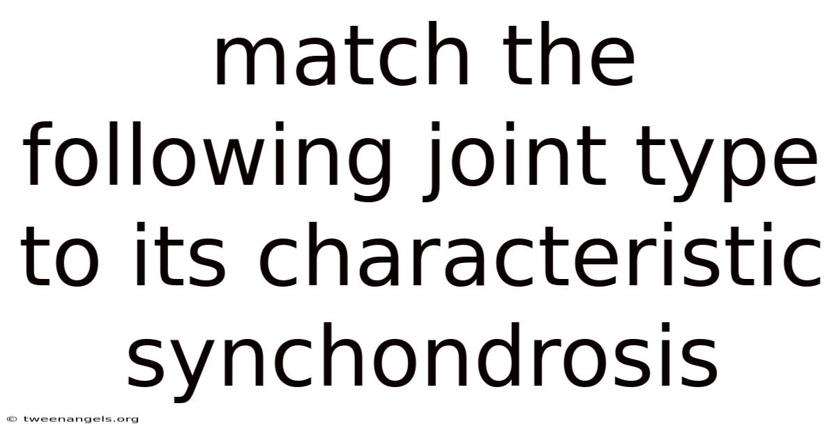 Understanding the human skeletal system requires familiarity with the various types of joints that make easier movement, provide stability, and protect vital organs. Also, among these, synchondrosis represents a specific and biologically significant category of joint. This article serves as a complete walkthrough to identifying and matching joint types with the defining characteristics of synchondrosis. We will explore the definition, classifications, locations, and functional implications of this cartilaginous junction, ensuring a thorough comprehension of its role in anatomy Worth keeping that in mind..
