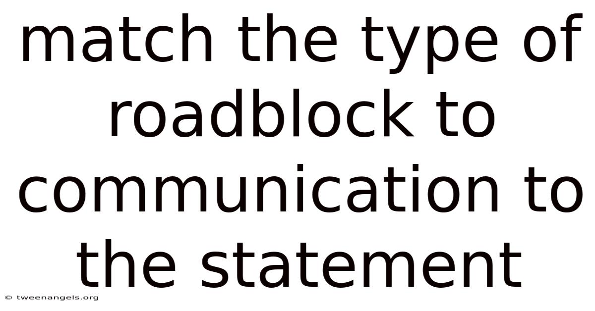 Effective communication forms the foundation of successful relationships, both personal and professional. Still, numerous roadblocks to communication can hinder the exchange of ideas, emotions, and information. Consider this: these barriers often manifest in our statements and interactions, preventing clear understanding between parties. By learning to match specific communication roadblocks to the statements that represent them, we can identify obstacles that impede effective dialogue and work toward more meaningful connections And that's really what it comes down to..