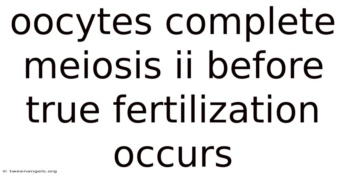 The completion of meiosis II in oocytes before true fertilization is not a standard process in most mammals, including humans. In humans, meiosis II is typically finalized only after the oocyte is fertilized by a sperm. In real terms, this is because the oocyte’s completion of meiosis II is dependent on signals from the sperm, such as calcium influx or the release of specific proteins. These signals check that the oocyte’s chromosomes are properly segregated and that the resulting zygote has the correct number of chromosomes That alone is useful..