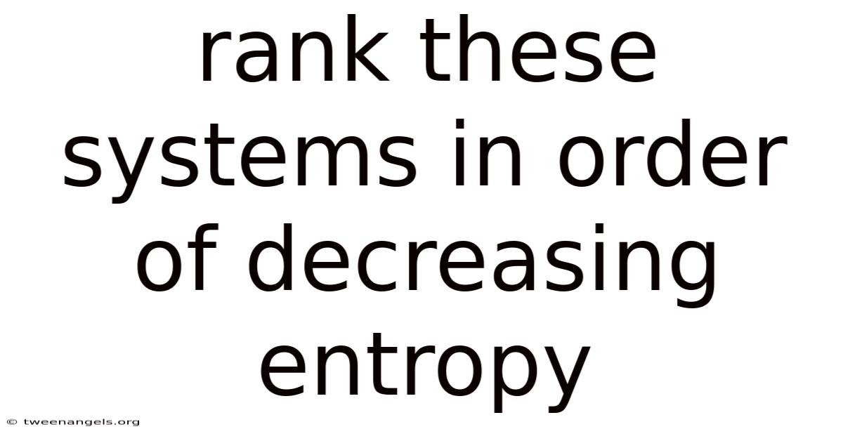 Entropy, a fundamental concept in thermodynamics and statistical mechanics, measures the degree of disorder or randomness within a system. When we rank these systems in order of decreasing entropy, we are essentially arranging them from the most disordered state to the most ordered state. This process requires a deep understanding of how energy is distributed among particles, the number of accessible microstates, and the physical constraints governing each system. The higher the entropy, the greater the number of microscopic configurations that correspond to a macroscopic state. This article will explore the principles behind entropy, examine various systems, and provide a detailed ranking based on their inherent disorder Small thing, real impact..