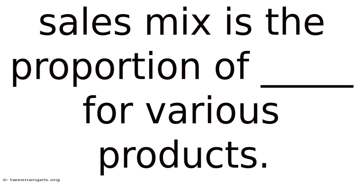 The statement "sales mix is the proportion of _____ for various products" is more than a textbook fill-in-the-blank exercise — it represents a foundational tool for business decision-making that ties individual product performance to overall company success. Whether the blank is filled with total revenue, total units, or total contribution margin, the core takeaway remains the same: not all sales are equal, and the proportion of each product sold has a direct, measurable impact on profitability, break-even points, and long-term strategic viability Most people skip this — try not to..