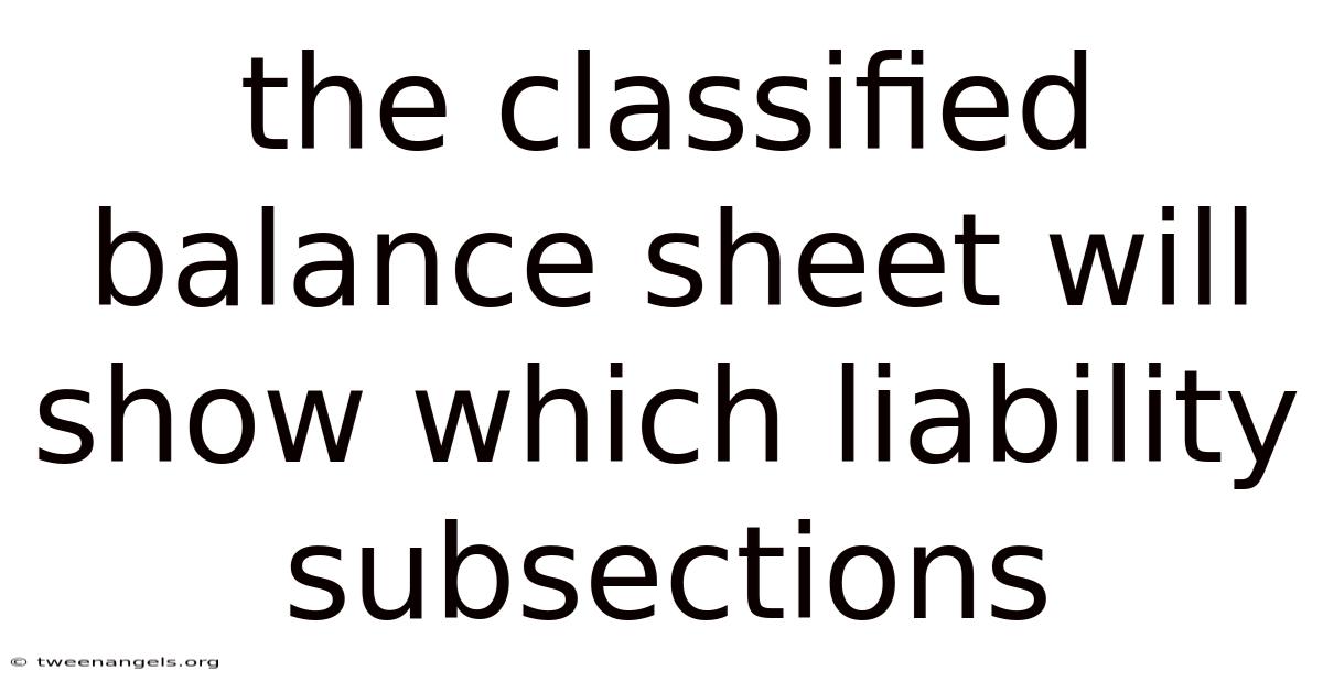 The Classified Balance Sheet Will Show Which Liability Subsections