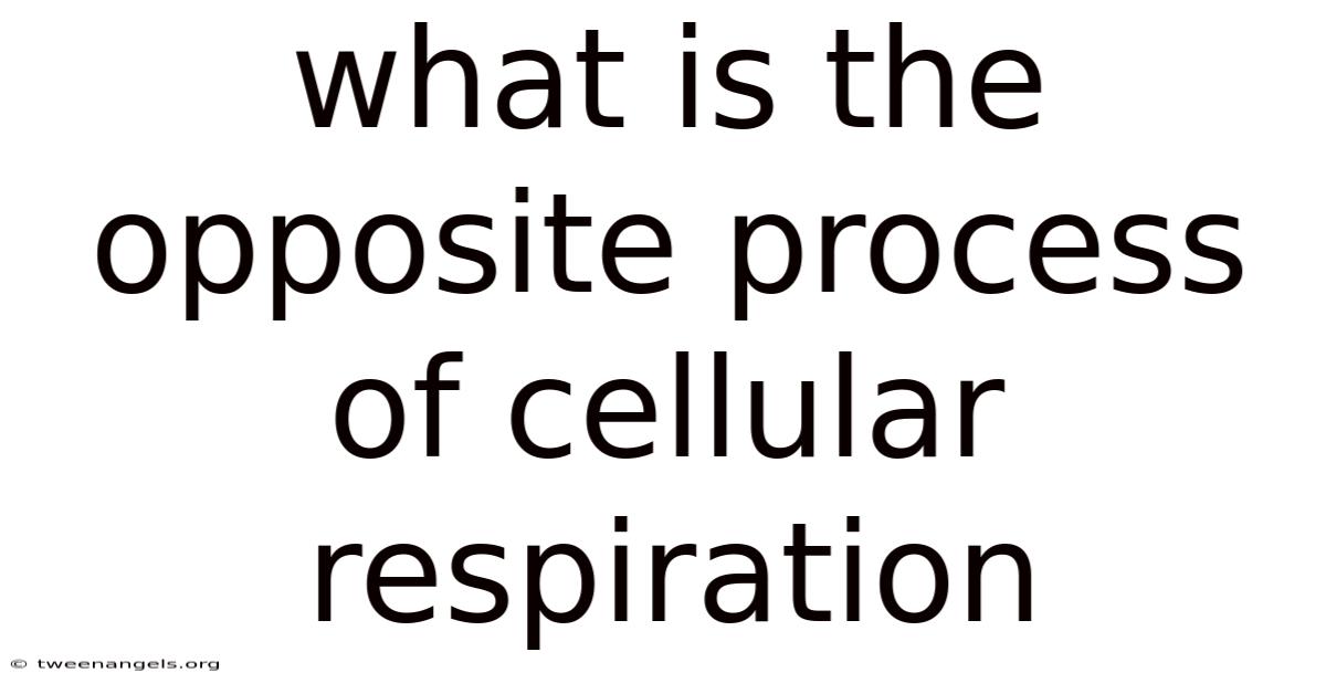 The short version: the opposite process of cellular respiration is photosynthesis. While cellular respiration is a catabolic process that breaks down glucose to release energy (ATP), photosynthesis is an anabolic process that uses light energy to build glucose.