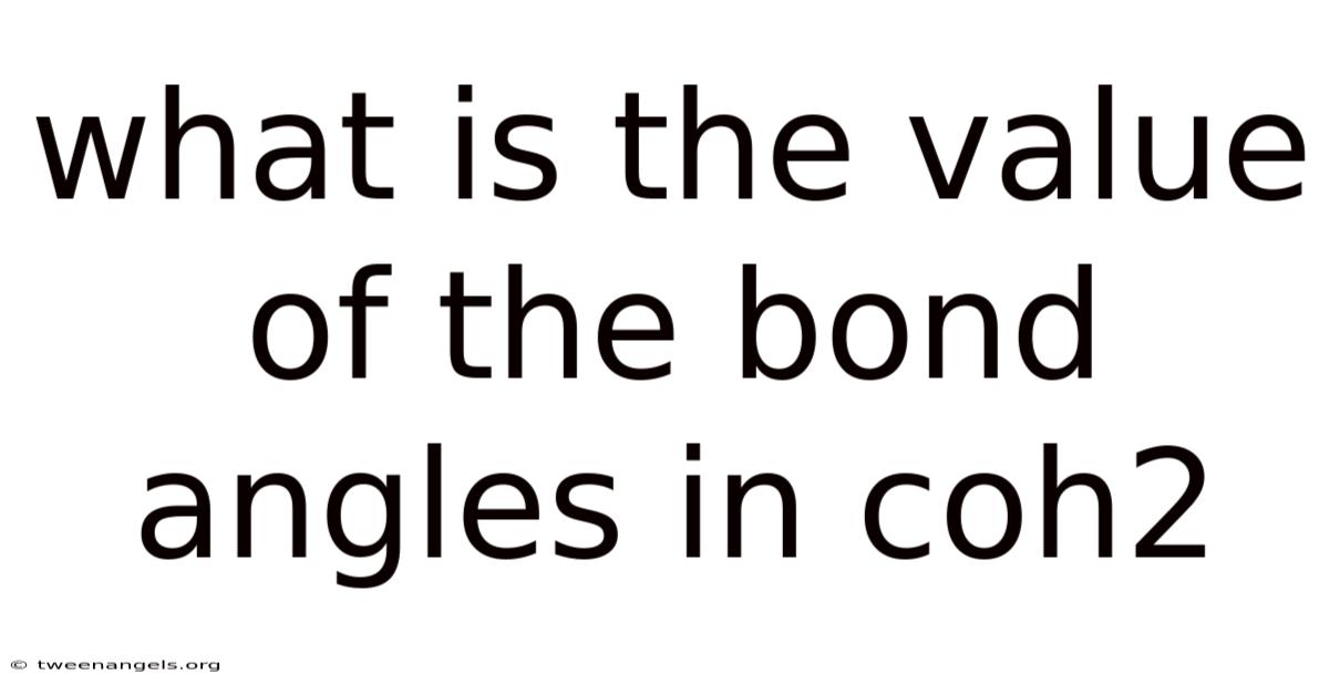 Theconcept of bond angles in molecular structures is a fundamental aspect of chemistry that determines the spatial arrangement of atoms within a molecule. Still, assuming COH2 refers to a hypothetical molecule composed of one carbon atom, one oxygen atom, and two hydrogen atoms, the analysis of its bond angles would depend on its molecular geometry. COH2 is not a standard or commonly recognized chemical formula in conventional chemistry. Which means this could stem from a typographical error, a hypothetical scenario, or a specific context not widely documented. When discussing the value of bond angles in COH2, First clarify the nature of this molecule — this one isn't optional. Understanding this requires an exploration of molecular structure, valence electron distribution, and the principles governing molecular geometry, such as the Valence Shell Electron Pair Repulsion (VSEPR) theory Turns out it matters..