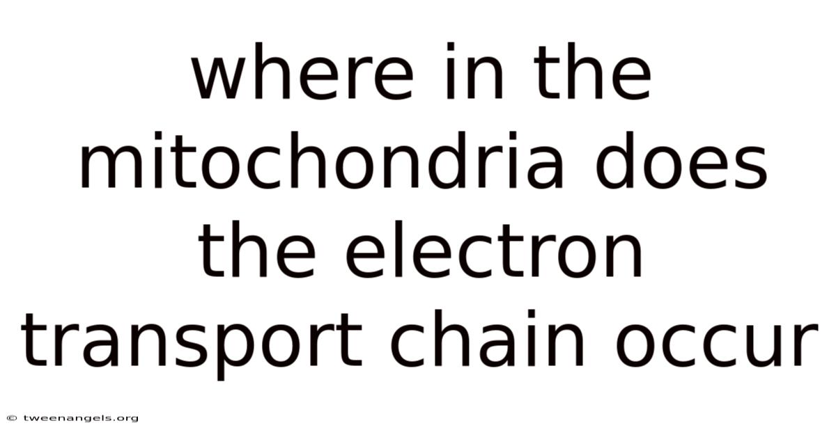 Where in the mitochondria does the electron transport chain occur? The electron transport chain (ETC) is the final stage of cellular respiration, and its location within the mitochondrion is a key determinant of how efficiently cells convert nutrients into usable energy. Understanding the precise mitochondrial compartment where this process unfolds provides insight into the biochemical machinery that powers virtually every cellular activity.