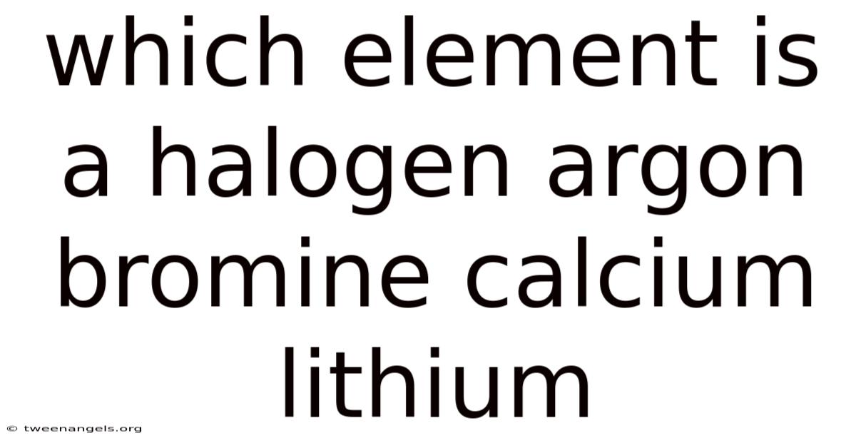 Which element among Argon, Bromine, Calcium, and Lithium is a halogen? The answer lies in understanding the periodic table’s organization and the distinct chemical behavior of halogens. While Argon belongs to the noble gases, Calcium is an alkaline‑earth metal, and Lithium is an alkali metal, Bromine is the sole member of this list that fits the definition of a halogen And that's really what it comes down to..