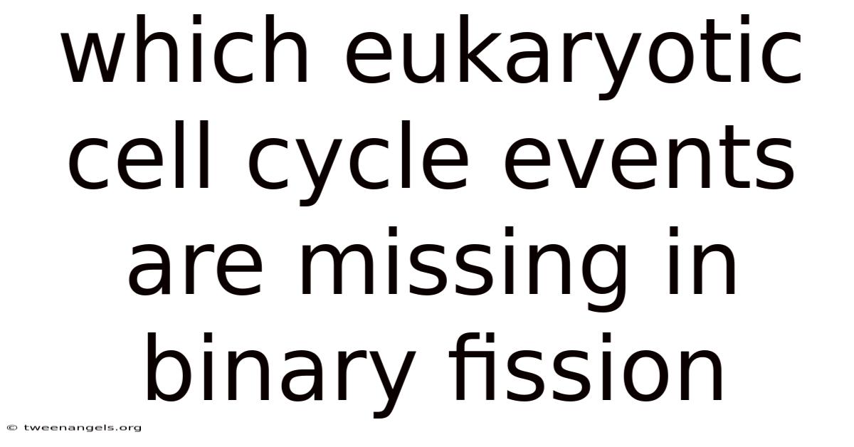 When a single eukaryotic cell divides into two, it may do so via binary fission or mitosis. Consider this: while mitosis is a universal, highly choreographed process observed in plants, animals, and many fungi, binary fission is predominant in unicellular eukaryotes such as Saccharomyces cerevisiae (budding yeast), Schizosaccharomyces pombe (fission yeast), and various protists. The key question is: **Which classic eukaryotic cell cycle events are absent in binary fission?