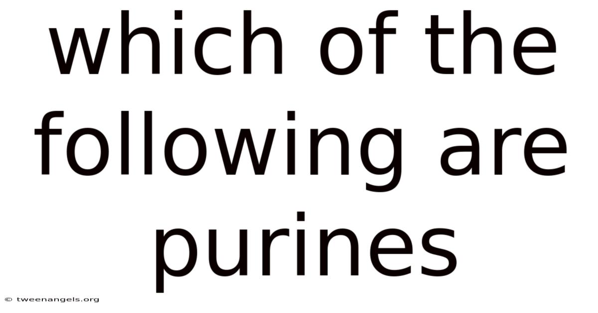 By recognizing which of the following are purines, we can appreciate their significance in genetics, metabolism, and overall health. So, a comprehensive understanding of purines is key to appreciating the complexity and elegance of biological systems. Whether in the context of DNA structure or dietary considerations, purines play a vital role in the layered web of life. Beyond that, the metabolic pathways involving purines highlight their involvement in energy production and other crucial cellular processes. Maintaining a balanced intake, particularly mindful of high-purine foods, can contribute to overall well-being and prevent potential health complications associated with excessive uric acid levels Not complicated — just consistent..