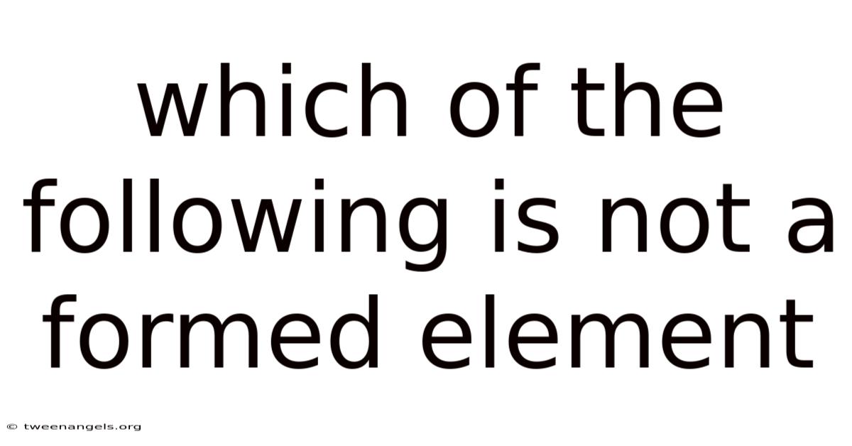 When studying human anatomy and physiology, students frequently encounter the question: which of the following is not a formed element? That's why this classic multiple-choice prompt tests your foundational understanding of blood composition, a critical concept in hematology, nursing, and medical sciences. Blood is far more than a simple red fluid; it is a specialized connective tissue composed of distinct cellular components suspended in a liquid matrix. By clearly defining what formed elements are, how they differ from plasma, and why this distinction matters in clinical and academic settings, you will not only answer this question correctly but also build a solid framework for understanding circulatory health and diagnostic testing Surprisingly effective..