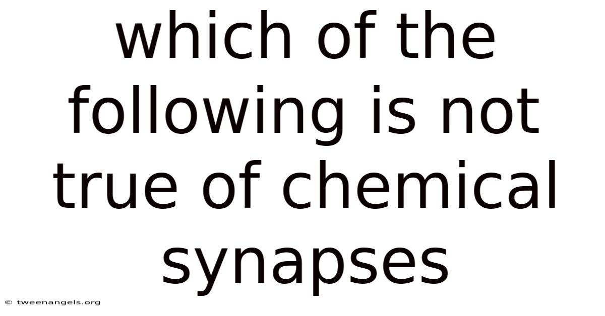 Chemical synapses represent a sophisticated and versatile means of neural communication, despite being slower than their electrical counterparts. Here's the thing — their ability to integrate, modulate, and store information makes them essential for the complex functions of the nervous system. Understanding which statements about chemical synapses are false helps clarify their true nature and importance in neural function.