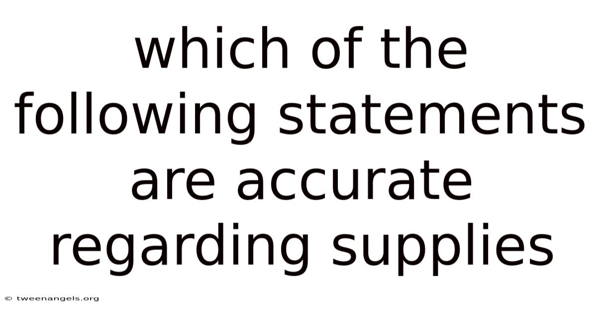 The term supplies refers to the tangible items or resources required to produce goods, deliver services, or sustain operations. These can range from raw materials like timber and ore to finished products like office equipment or medical supplies. The accuracy of statements regarding supplies hinges on context, whether we are discussing microeconomics, supply chain management, or global trade. Plus, a precise grasp of terminology such as inventory, stock, and procurement is essential to evaluate claims effectively. This exploration aims to clarify misconceptions and highlight the nuanced dynamics that govern the world of supplies And that's really what it comes down to..