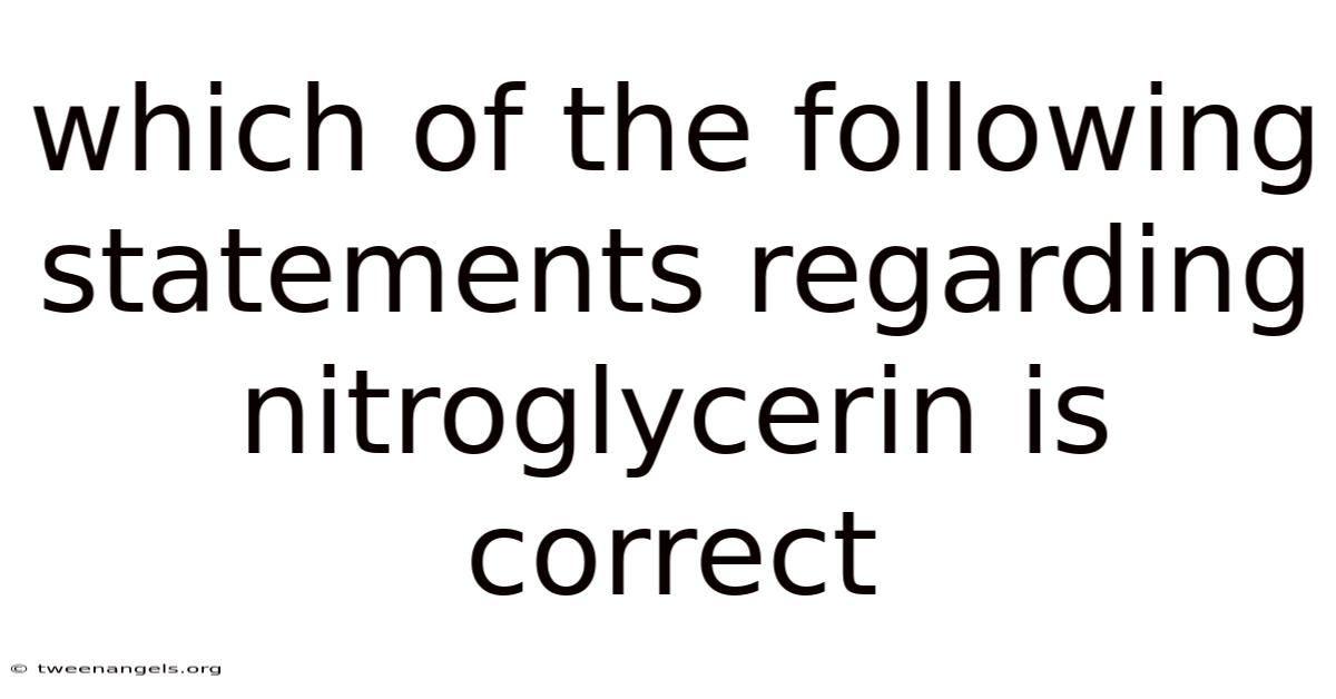 Which of the following statements regardingnitroglycerin is correct? This question frequently appears in pharmacology exams and safety training programs, and understanding the answer requires a clear grasp of the compound’s properties, uses, and regulatory context. In this article we will dissect common assertions, evaluate each one against scientific evidence, and pinpoint the single statement that holds true. By the end, readers will not only know the correct answer but also appreciate why the other options are misleading, thereby strengthening both academic performance and practical awareness The details matter here..
