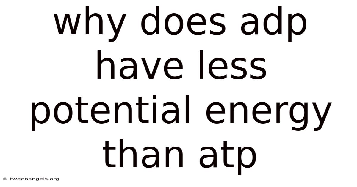 The relationship between adenosine diphosphate (ADP) and adenosine triphosphate (ATP) is central to understanding cellular energy transfer. This difference in energy levels between ATP and ADP is not arbitrary but rooted in their chemical structures and the nature of the bonds they contain. Day to day, aTP is often referred to as the "energy currency" of the cell due to its high potential energy, which is released when it is converted to ADP. To grasp why ADP has less potential energy than ATP, Explore the molecular composition of these molecules, the mechanisms of energy storage, and their roles in biological processes — this one isn't optional.